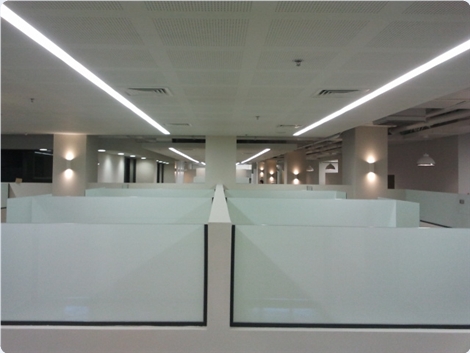 המשרדים תוכננו כחלל אחד גדול ויוצרים שדרת עבודה רציפה. כל חדרי המשרדים במבנה נבנו עם ויטרינות זכוכית המספקות אינטימיות אקוסטית לעבודה ומצד שני חלל שקוף ואלגנטי. עמדות העבודה עבור מהנדסי החברה נבנו כרצף אחד הנותנים חלל עבודה אחד גדול עם אלמנט אינטימי בשילוב מחיצות גבס + זכוכית.